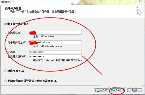 5、在“接收郵件(pop、IMAP或HTTP)服務器:”字段中輸入 pop.163.com。在“發(fā)送郵件服務器 (SMTP):”字段中輸入:smtp.163.com,單擊“下一步”。