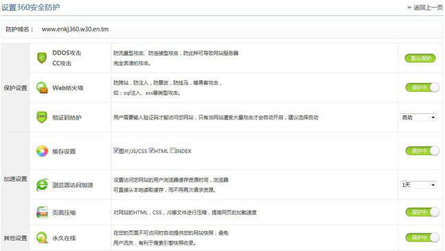 在360防護后臺,提供了諸如DDOS防攻擊,驗證碼防護等保護功能,普通的企業站和個人站來說,安全防護已經足夠了。