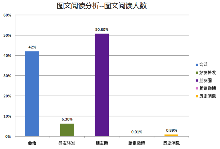 每個指標的數據都來源5個渠道:會話、好友轉發、朋友圈、騰訊微博、歷史消息。