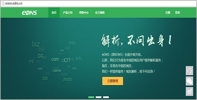 相信許多站長們都有在易名中國注冊購買過域名,除了提供域名申請注冊服務之外,還面向廣大用戶提供了免費的域名解析服務,它就是EDNS,目前非易名中國的用戶也是可以通過注冊登錄網站后臺進行設置的,關于設置方法此處不再進行詳細解說。