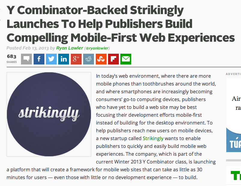 當(dāng)Strikingly已經(jīng)用盡了身邊的朋友以及朋友的朋友后,網(wǎng)站的增長(zhǎng)到達(dá)了一個(gè)瓶頸期。這時(shí)團(tuán)隊(duì)找到一些相對(duì)垂直且小型的科技媒體和創(chuàng)業(yè)媒體講述自己的故事,這些媒體也比較樂意來發(fā)布產(chǎn)品相關(guān)的信息和介紹。得到第一輪的PR之后,團(tuán)隊(duì)把目標(biāo)轉(zhuǎn)向主流的大眾媒體??墒谴蟊娒襟w一般不愿意報(bào)道一個(gè)這么早期的產(chǎn)品。團(tuán)隊(duì)沒有放棄,用google搜索,goole api和mturk等人工的方法搜到了一堆媒體的聯(lián)系方式。一家一家去聯(lián)系,給每一家媒體都寫十分個(gè)性化的郵件,講自己的故事。最后終于有一家紐約時(shí)報(bào)愿意報(bào)道他們的故事。在被紐約時(shí)報(bào)報(bào)道了之后,再聯(lián)系其它媒體就變得容易多了。就這樣,他們上了50多家主流媒體,獲取了頭2萬名用戶的增長(zhǎng)。