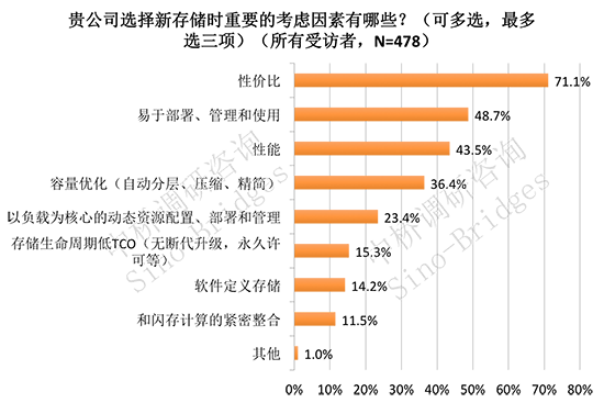 如上所述,在面臨這些存儲壓力的時候,企業在選擇新增存儲的時候,主要從哪些方面來進行決策?根據中橋2015年的調研數據顯示,在所有參訪的用戶評估因素有: