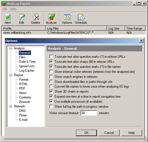 WebLog Expert - 雖然Google Analytics是一款強大的免費的網站分析服務,但必須加入統計代碼才能使用,WebLog Expert則可以直接分析網站的訪問日志文件,通過日志文件分析出網站的站點訪問者、活動統計、文件訪問量、搜索引擎、瀏覽器、操作系統和錯誤頁面等等眾多的統計信息,是網絡監測的好助手。這個軟件本身不免費,不過其另一個版本WebLog Expert Lite是免費的。