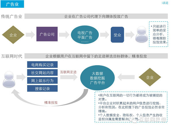 2、未來廣告業將依托互聯網大數據進行再建立。在未來,在你酒后駕車被罰后,也許你老婆的手機里面會出現是否需要為你購買保險的短信廣告。