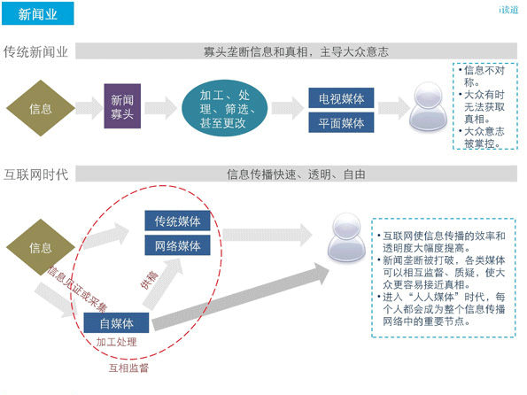 傳統新聞業被寡頭壟斷,在這樣一種壟斷之下,實際上是在壟斷真相。自媒體,以及小微媒體可以說是隨著互聯網發展進程的必然產物。互聯網進化最大的特點就是,透明!透明!再透明!福柯說過話語的本質就是權力意志,如果說新聞業是話語霸權的主導者,那么自媒體就是對話語霸權的解構,使得話語權力回歸到每一個有話語權的言說者身上。