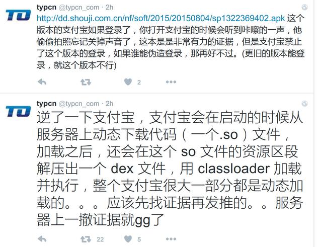 昨日,知乎上有網友曝光“支付寶Android版隱私門”事件,曾經曝光“12306泄密事件”、上過CCTV的用戶typcn在Twitter中發文,稱“支付寶安卓版每隔X分鐘(