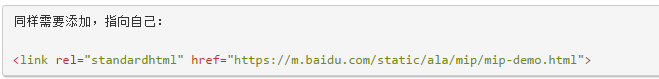 在某些情況下,站點對于同一個html頁面,可能存在兩種,一個是mip html,一個是standard html。 當百度檢索到你頁面的standard html時,你可以通過在mip中添加如下的代碼,以保證百度更好的檢索到你的mip html,同時也可以讓你的mip html更好的繼承standard html的權重等相關策略信息。