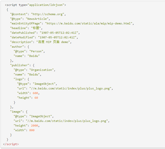 對于一些第三方的站點,這些站點嵌入了mip或者引入了mip,他們除了要只知道這是一個mip頁面之外還要了解一些mip頁面的開發的細節。比如:這個頁面是一個新聞文章,還是一個視頻,因此頁面需要有一個摘要來進行簡短的描述,同時也需要一個小的示意圖。