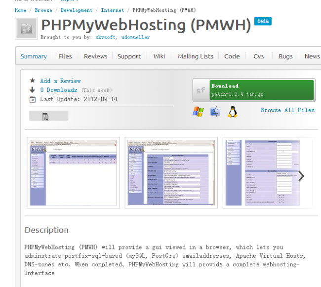 下載地址:https://sourceforge.net/projects/phpmywebhosting/