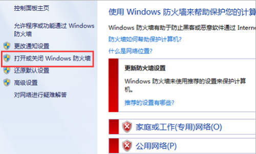4、在導航欄左側找到,打開或關閉Windows 防火墻。