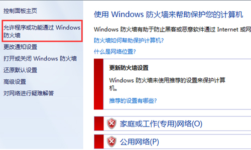 6、我們還可以對防火墻進一步設置,在左側導航欄選擇允許程序或功能通過Windows防火墻,我們可以查看那些程序和功能允許通過防火墻,若我們不想某個程序或功能通過防火墻,我們將前面的√去掉即可。 如圖1、圖2所示: