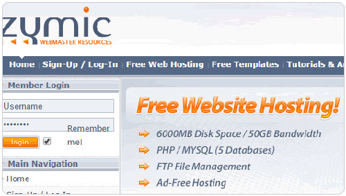 Zymic免費(fèi)空間,空間6G,每月50G流量限制,FTP、Web方式上傳管理文件,支持PHP5,限制較多,有3個MySQL數(shù)據(jù)庫,提供免費(fèi)二級域名1個,可綁定無限個自己的域名,無廣告。