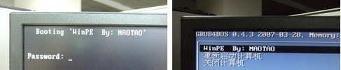 第二步、啟動(dòng)電腦后,會(huì)要求輸入啟動(dòng)U盤的密碼,也就是前文在制作這個(gè)啟動(dòng)U盤時(shí)設(shè)置的密碼。當(dāng)輸入正確的密碼后,即可看到一個(gè)選擇菜單,選擇“WinPE By:MAOTAO”。(如果沒設(shè)置U盤啟動(dòng)密碼就不管)