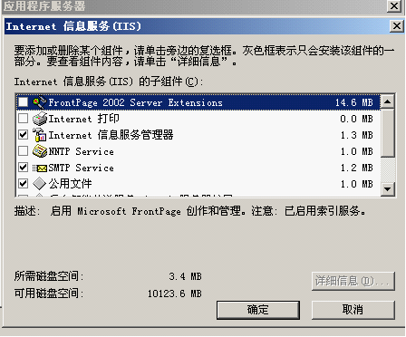 選擇“應用程序服務器”→“Internet信息服務(IIS)”,在“Internet信息服務(IIS)”對話框中找到“SMTPService”,確保它已經被選中。如下圖: